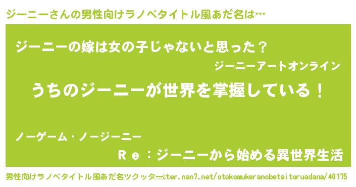 | 意味不明あだ名 | 『とにかく怪しいジーニー』 |