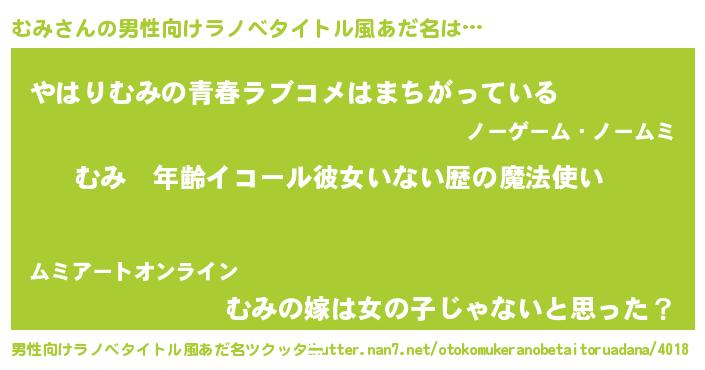 | 女子向けラノベタイトル風あだ名 | 『むみの玉の輿計画!』『むみ伯爵の花嫁』 |