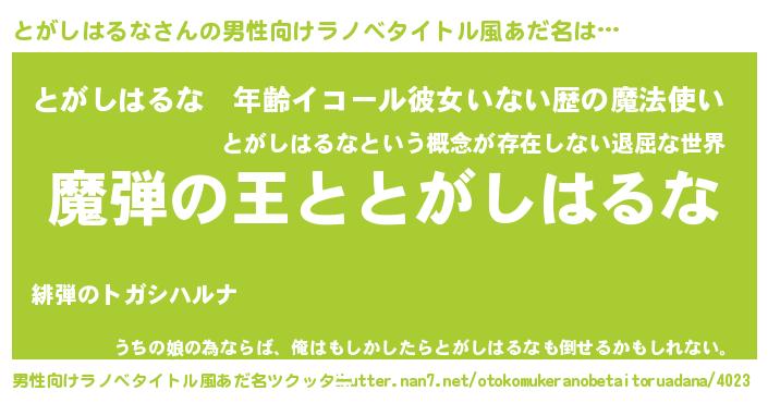 | 意味不明あだ名 | 『住所不定無職とがしはるな(12歳)』 |