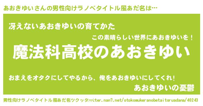 | ヒーロー風カッコイイあだ名 | 『ウルトラ戦士アオキユイ』 |