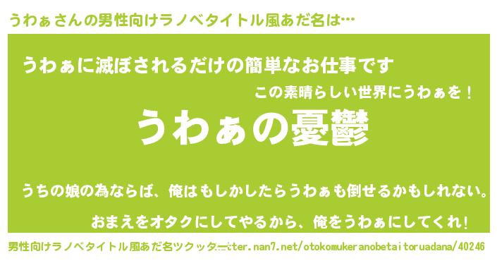 | 胡散臭い通販商品みたいなあだ名 | 『必ず成功するブレスレット…その名も「うわぁ」』 |
