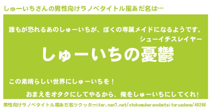 | 女子向けラノベタイトル風あだ名 | 『しゅーいち姫と円卓の騎士』 |
