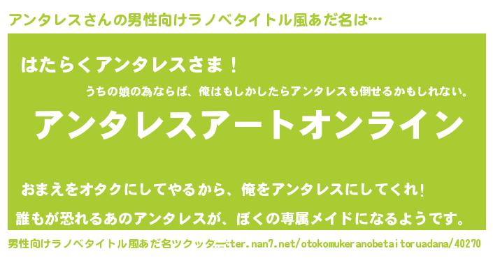 | 可愛いあだ名 | 『アんアん』『アンタレスママ』 |