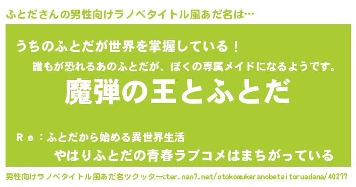 | 意味不明あだ名 | 『住所不定無職ふとだ(93歳)』『自称ふとだ』 |