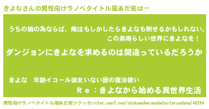 | 意味不明あだ名 | 『とにかく怪しいきよな』『自称きよな』 |