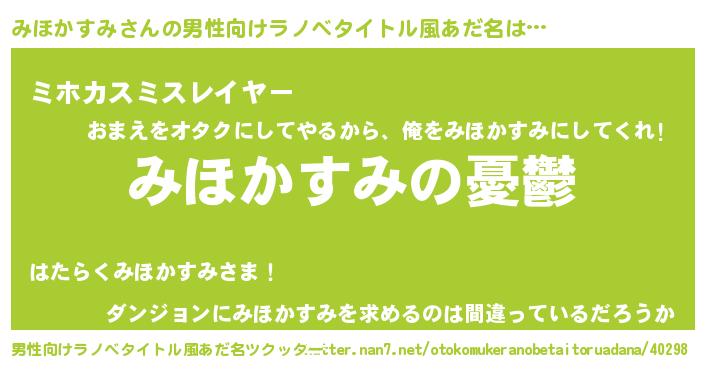 | ヘコむあだ名 | 『みほにー』『みほぷりん』『豆乳』 |