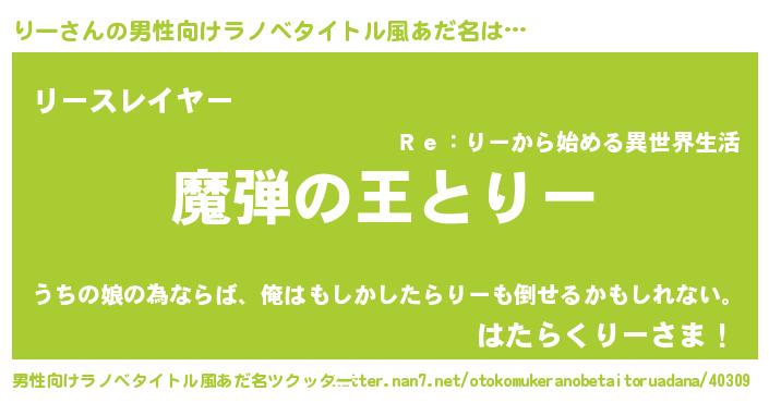 | 女子向けラノベタイトル風あだ名 | 『乙女ゲームの破滅フラグしかない悪役りーに転生してしまった…』 |