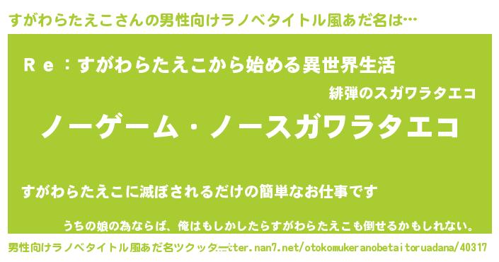 | 女子向けラノベタイトル風あだ名 | 『死神すがわらたえこの再婚』 |