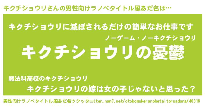| 女子向けラノベタイトル風あだ名 | 『(仮)キクチショウリのやんごとなき事情』 |