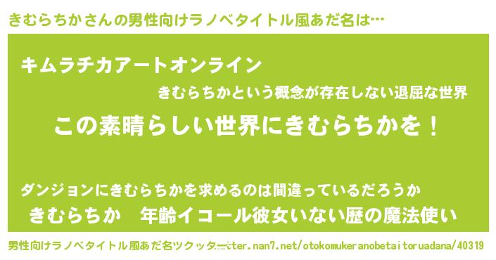 | 意味不明あだ名 | 『住所不定無職きむらちか(81歳)』 |