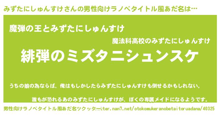 | 女子向けラノベタイトル風あだ名 | 『シンデレラみずたにしゅんすけ家の靴箱館』 |