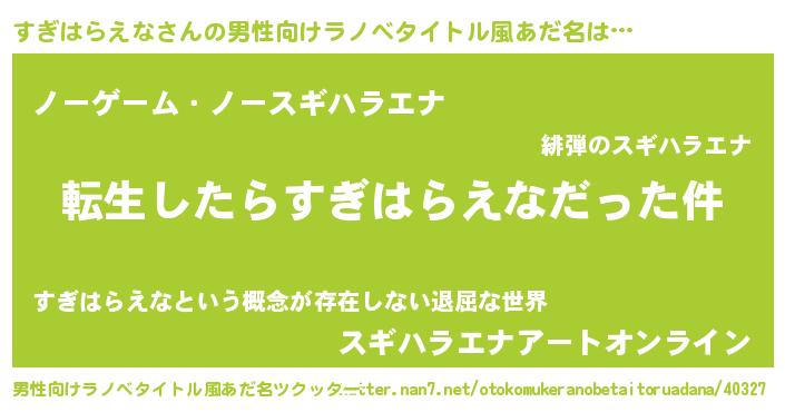 | 料理風あだ名 | 『すぎはらえなごはん』 |
