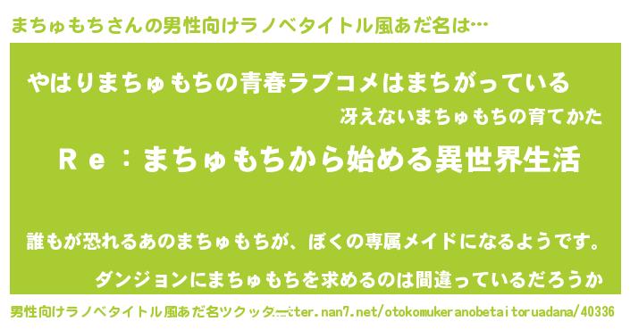 | 女子向けラノベタイトル風あだ名 | 『闇のまちゅもち』 |