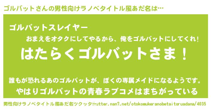 | 胡散臭い通販商品みたいなあだ名 | 『幸せが訪れる高級そうな絵画…その名も「ゴルバット」』 |