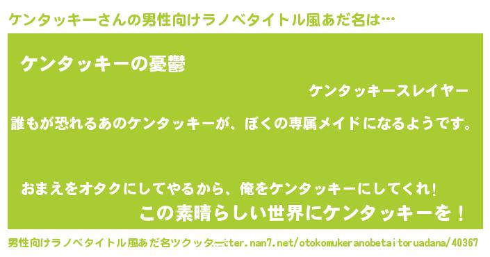 | 女子向けラノベタイトル風あだ名 | 『異世界でカフェケンタッキーを開店しました。』 |