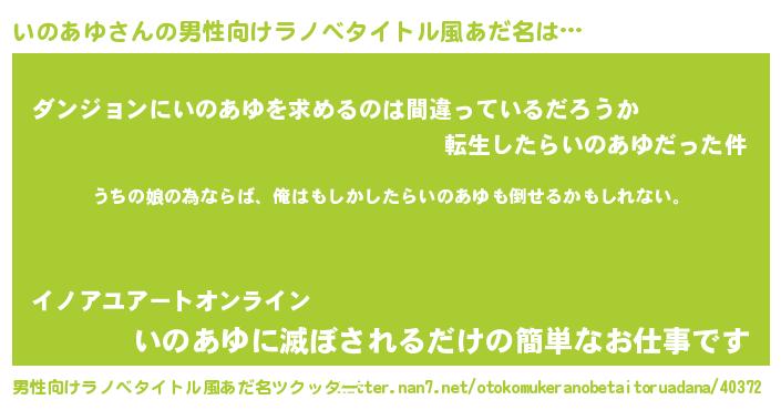 | ヒーロー風カッコイイあだ名 | 『ウルトラいのあゆマン』『銀牙騎士イノ』 |