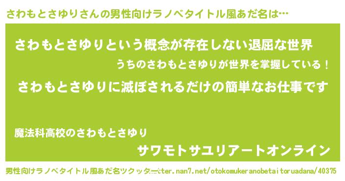 | 意味不明あだ名 | 『永久保存さわもとさゆり』 |