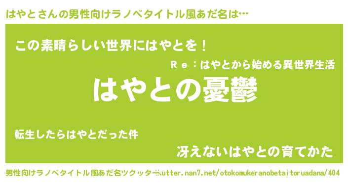 | 胡散臭い通販商品みたいなあだ名 | 『必ず成功する霊験あらたかなお札…その名も「はやと」』 |