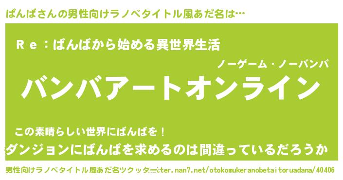 | 意味不明あだ名 | 『ペロリンばんば』『自称ばんば』 |