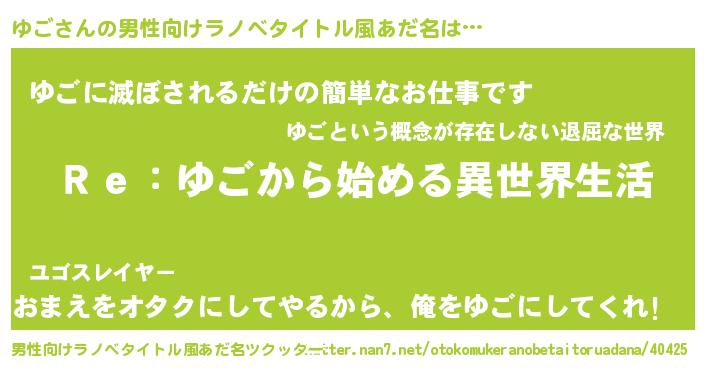 | 女子向けラノベタイトル風あだ名 | 『ゆごストレイドッグス』 |