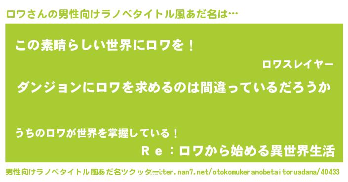 | ヒーロー風カッコイイあだ名 | 『魔戒騎士ロワ』『仮面ロワダー』 |