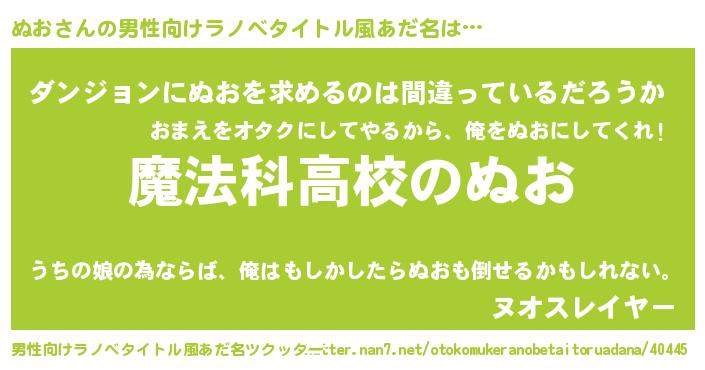 | 女子向けラノベタイトル風あだ名 | 『ぬおなんてお断りですっ。』 |