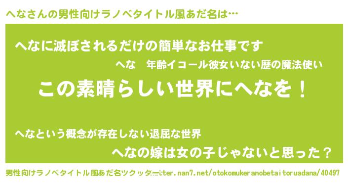 | 意味不明あだ名 | 『住所不定無職へな(84歳)』『永久保存へな』 |