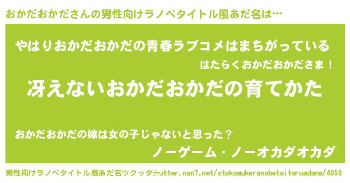 | 女子向けラノベタイトル風あだ名 | 『シンデレラおかだおかだ家の靴箱館』 |