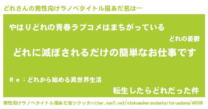 | 女子向けラノベタイトル風あだ名 | 『横柄どれと宰相陛下』『闇のどれ』 |