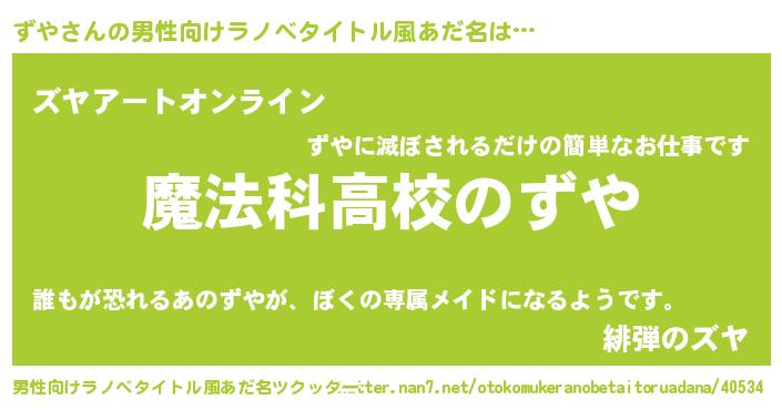 | 女子向けラノベタイトル風あだ名 | 『ずやなんてお断りですっ。』 |