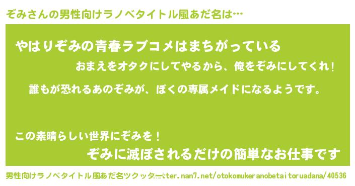 | 女子向けラノベタイトル風あだ名 | 『異世界でカフェぞみを開店しました。』 |