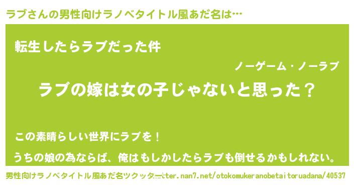 | 女子向けラノベタイトル風あだ名 | 『ラブの卵を拾いまして』 |