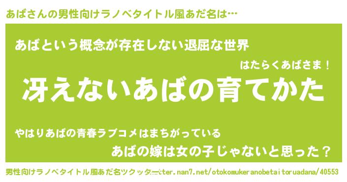 | 胡散臭い通販商品みたいなあだ名 | 『来世でも幸せになれる水素水…その名も「あば」』 |