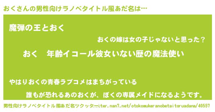| 胡散臭い通販商品みたいなあだ名 | 『あなたにだけ特別に提供する100年もののヴィンテージワイン…その名も「おく」』 |