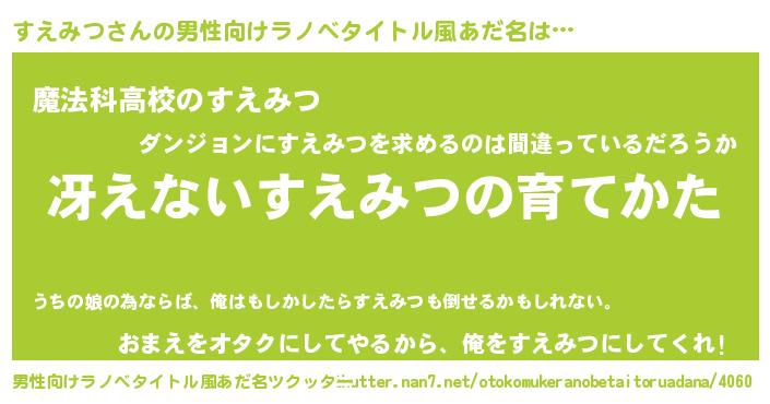 | 胡散臭い通販商品みたいなあだ名 | 『テレビで話題のアガリクス…その名も「すえみつ」』 |