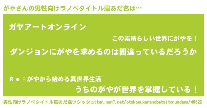 | 女子向けラノベタイトル風あだ名 | 『がやは平凡を望む』 |