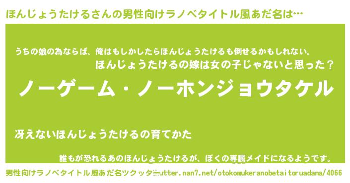 | 女子向けラノベタイトル風あだ名 | 『ほんじょうたける恋絵巻』 |
