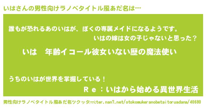 | 胡散臭い通販商品みたいなあだ名 | 『前代未聞の健康食品…その名も「いは」』 |