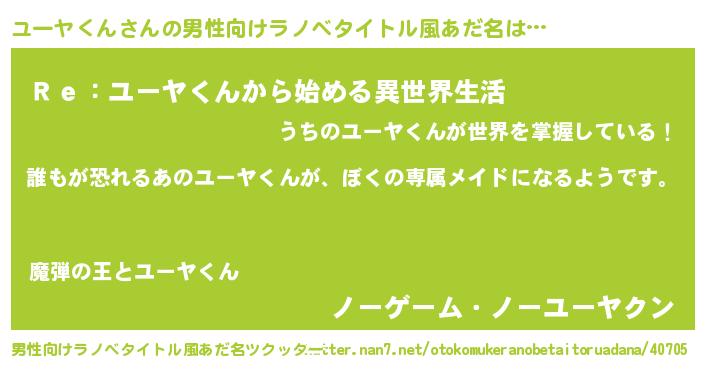 | ヒーロー風カッコイイあだ名 | 『ネオユーヤクン』『最強戦士ユーヤクン』 |