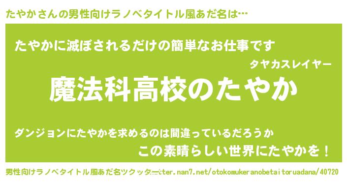 | 女子向けラノベタイトル風あだ名 | 『たやかなんてお断りですっ。』 |