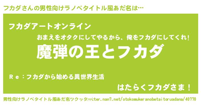 | 意味不明あだ名 | 『住所不定無職フカダ(3歳)』『自称フカダ』 |