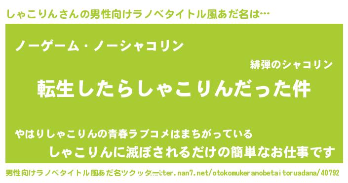 | ヘコむあだ名 | 『なまこ酢』『しゃこりん(小並感)』 |