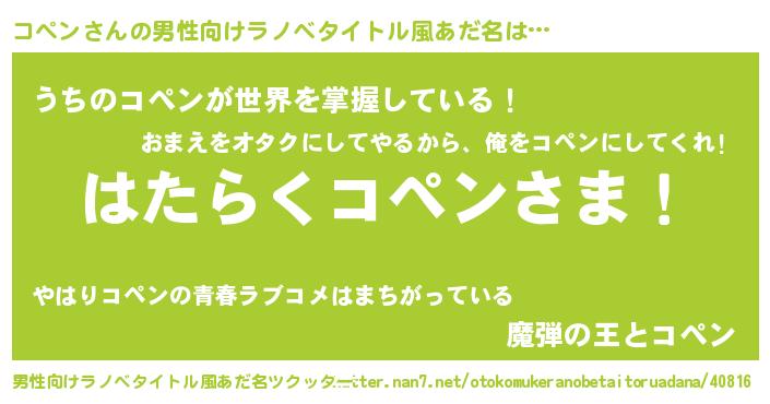 | 意味不明あだ名 | 『住所不定無職コペン(59歳)』 |