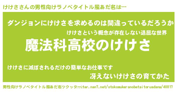 | 女子向けラノベタイトル風あだ名 | 『けけさアンティーク』 |