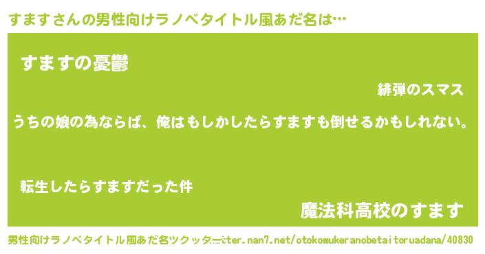 | ヒーロー風カッコイイあだ名 | 『ウルトラすますマン』『スーパースマス』 |