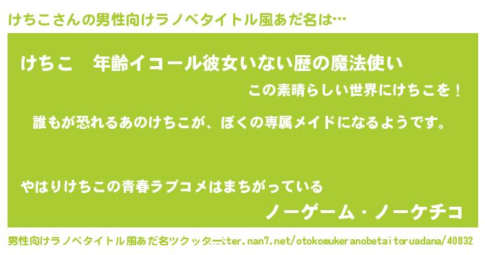 | 意味不明あだ名 | 『永久保存けちこ』『つくし科けちこ属』 |
