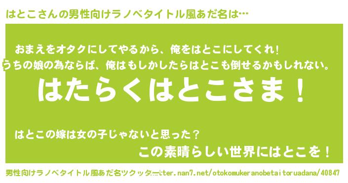 | 胡散臭い通販商品みたいなあだ名 | 『100人中100人が認めたイリジウム磁石…その名も「はとこ」』 |