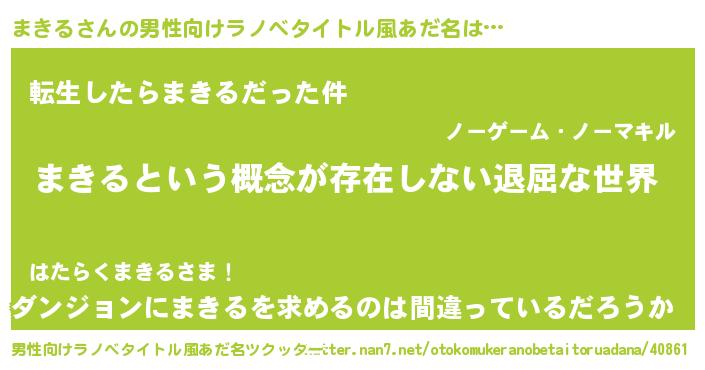 | 女子向けラノベタイトル風あだ名 | 『異世界で失敗しない100のまきる』 |