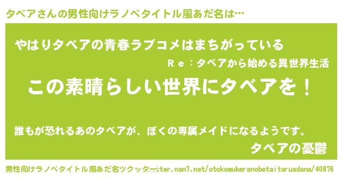 タベアさんの男性向けラノベタイトル風あだ名をツクッター!