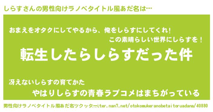 | 草はえるンゴwww …「なおや」 | 10月20日 10:30 |
